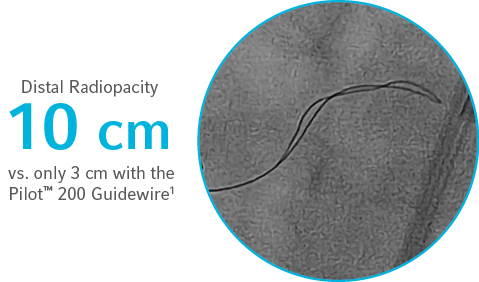 - Based on manufacturer-reported radiopaque coil lengths—Pilot™ 200 Guidewire labeling.